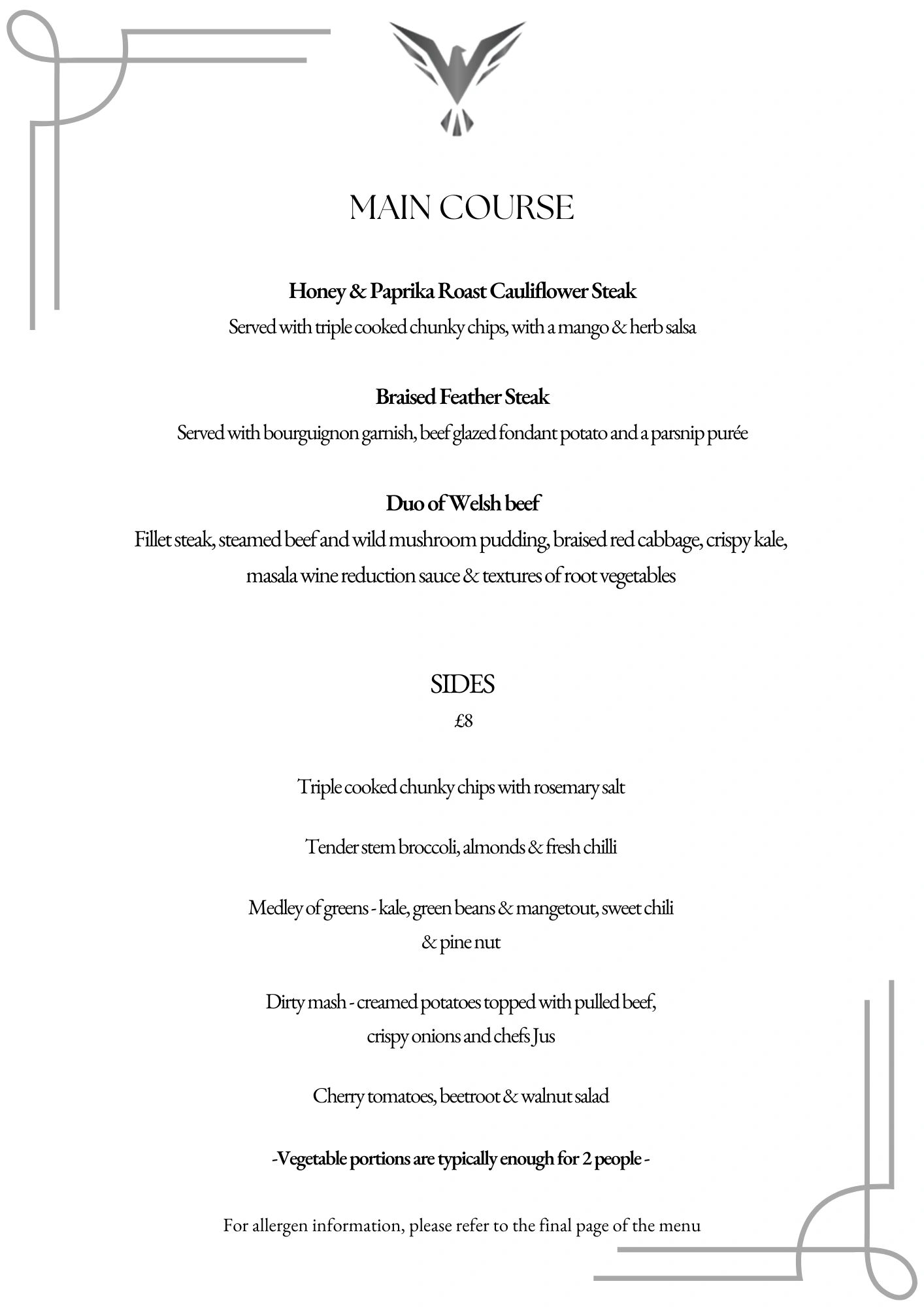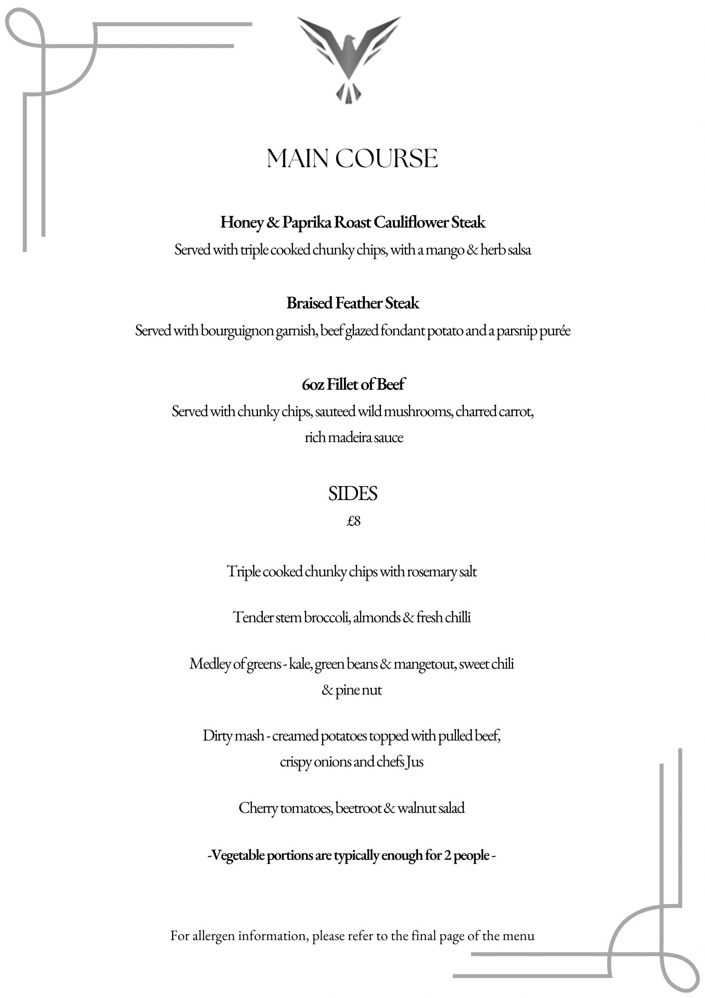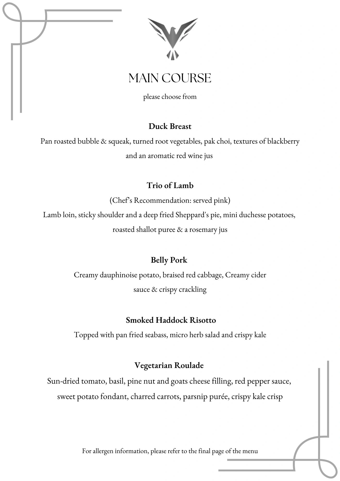 Should you have any allergen's or intolerances please highlight them on your reservation and please do inform our staff on arrival.